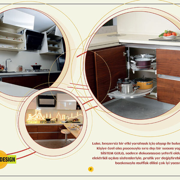 Lake, ahşap ile buluşuyorTeknoloji ve tasarımı mükemmel bir şekilde harmanlayan bu mutfak, mutfaklarınıza hem modernlik hem de işlevsellik kazandırır.Lake, benzersiz bir etki yaratmak için ahşap ile buluşur. Kişiye özel alın panosuyla sıra dışı bir sunum yapan SİSTEM GULA, sadece dokunmanın yeterli olduğu elektrikli açılım sistemleriyle, pratik yer değiştirebilen bankosuyla mutfak dilini çok iyi yansıtır.