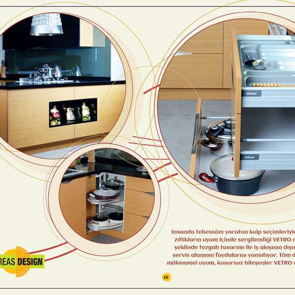 Mükemmel uyum, kusursuz bileşenlerVETRO'nun zarif tasarımı, mutfağınıza ferah bir hava katarken, aynı zamanda estetik bir görünüm sunar.İnsanda tebessüm yaratan kulp seçimleriyle, belirgin zıtlıkların uyum içinde sergilendiği VETRO mutfak 'U' şeklinde tezgah tasarımı ile iş akışının dışında kalan servis alanının faydalarını yansıtıyor. Tüm detaylarla mükemmel uyum, kusursuz bileşenler VETRO mutfakta.